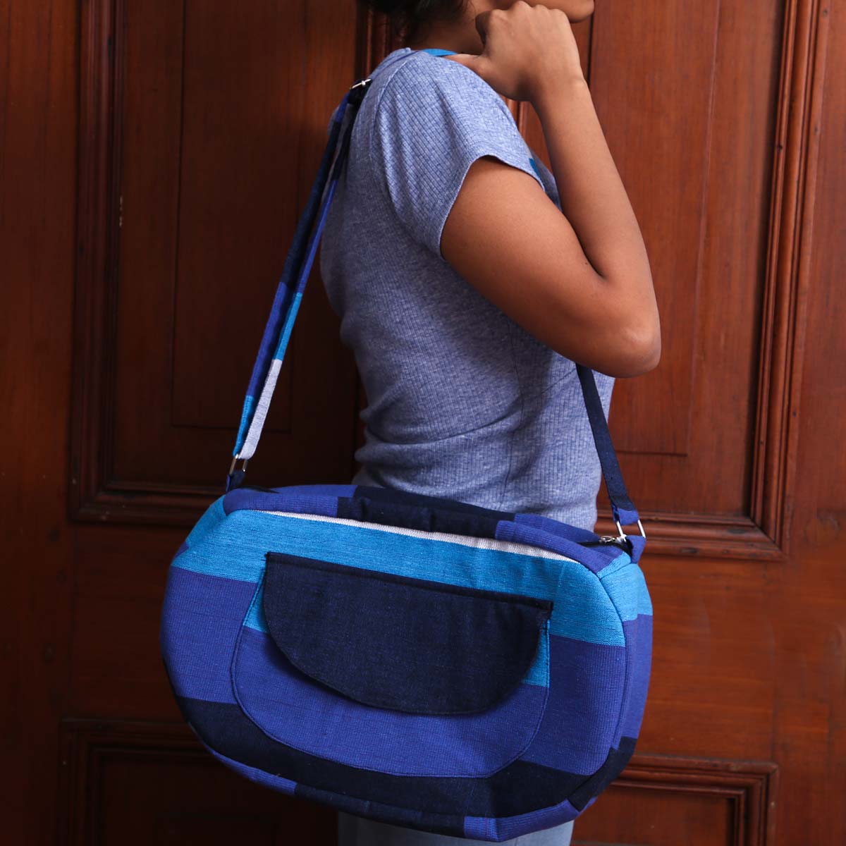 Shades Of Blue Handloom Shoulder Bag